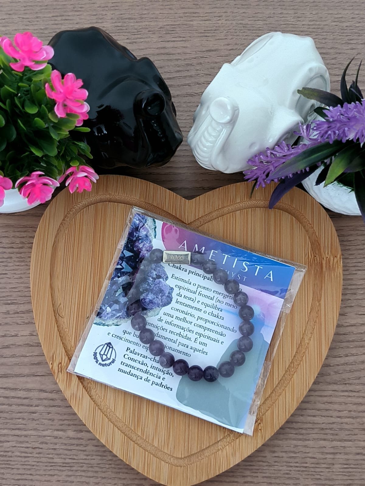 A Pulseira de Ametista é uma aliada poderosa para quem busca proteção, clareza mental e serenidade emocional. Atua diretamente no chakra frontal e coronário, acalmando a mente, fortalecendo a intuição e purificando emoções.