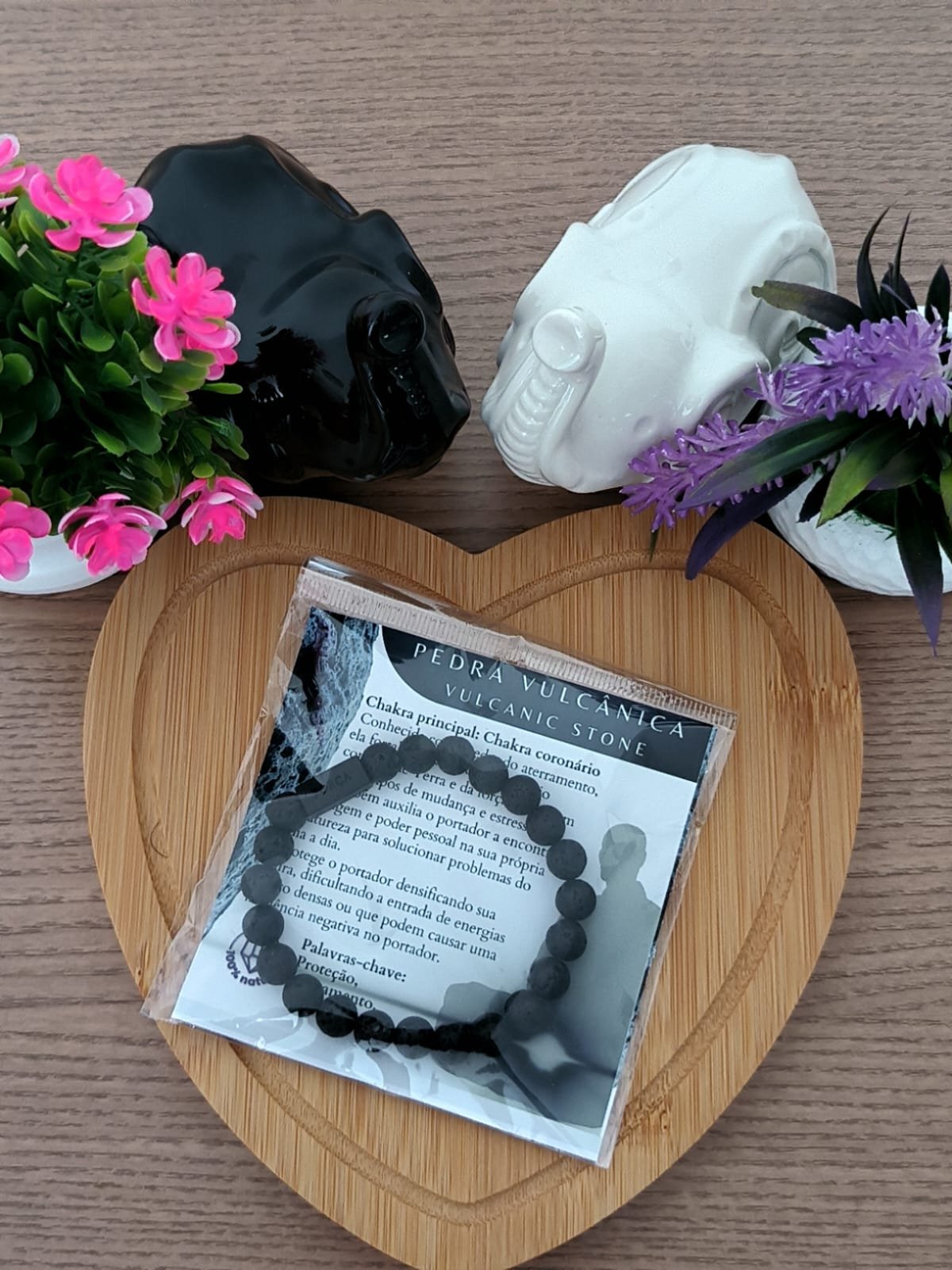 A Pulseira de Pedra Vulcânica, também chamada de Lava Vulcânica, é um cristal de força ancestral. Nasce do fogo da Terra e carrega energia de proteção, estabilidade e renascimento.
